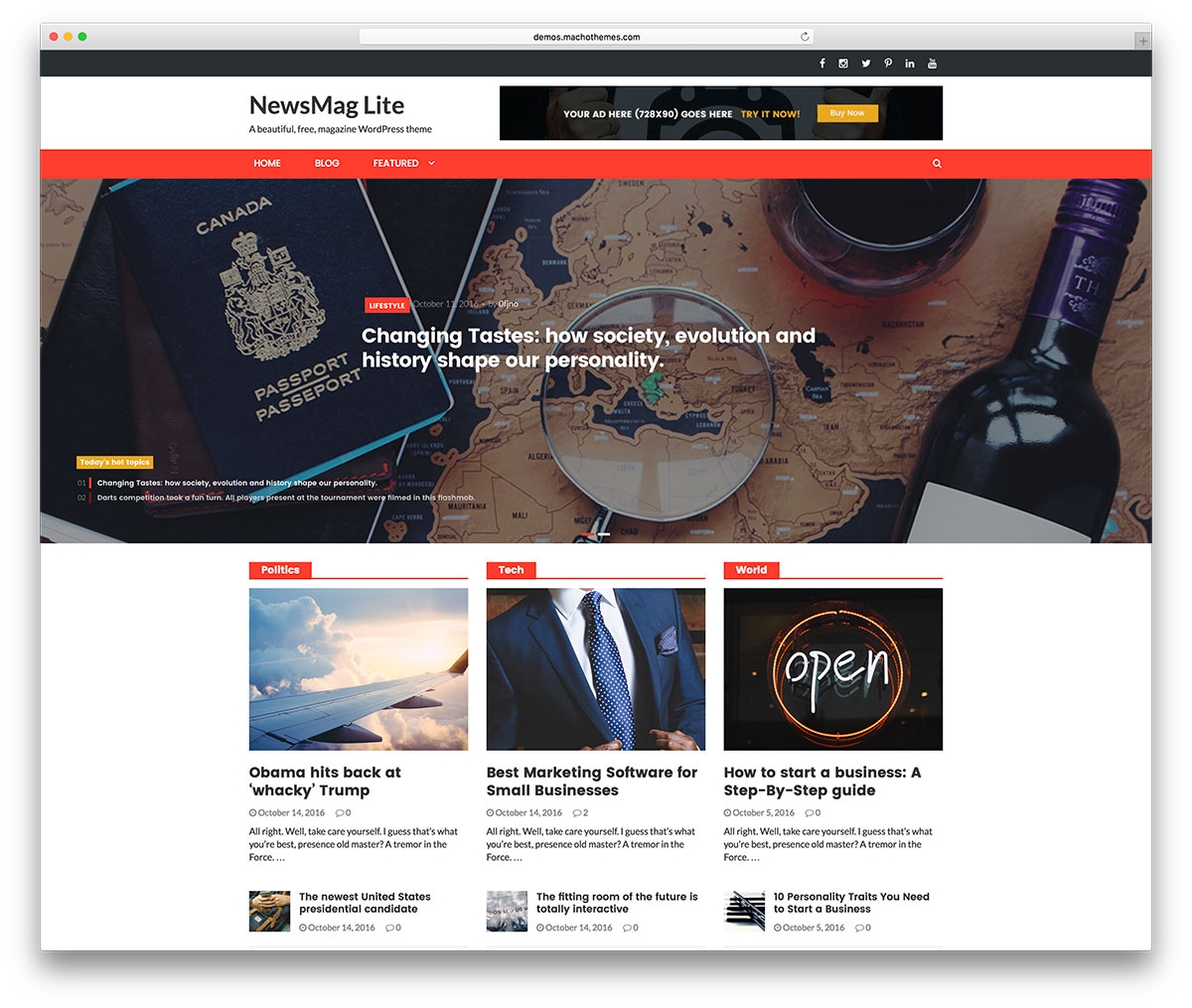 NewsMag Lite là một trang web được thiết kế cẩn thận và được xây dựng cẩn thận, đánh bóng và chuyên nghiệp, đáp ứng cao miễn phí WordPress tạp chí trực tuyến đa tạp trang web. NewsMag Lite đã được thiết kế có mục đích cho sự linh hoạt và dễ sử dụng nhất, cho phép quản trị web từ tất cả các lĩnh vực của cuộc sống một cách dễ dàng và hiệu quả các tạp chí trực tuyến tinh vi tinh chỉnh theo phong cách đồ họa và xây dựng thương hiệu ưa thích với các tính năng chất lượng cao, , Và hoàn toàn miễn phí.