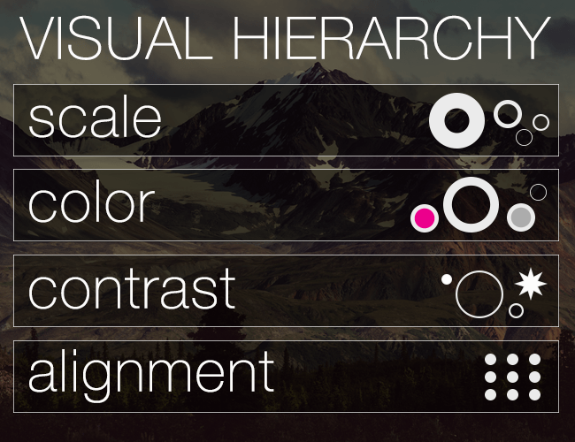 Ý nghĩa cho website của bạn: Dùng Line hoặc Visual Hierarchy để "buộc" người dùng đi theo nội dung của bạn.Nhiều nghiên cứu đã được thực hiện để xác định cách đọc xem nội dung trên màn hình. Kết quả là rất rõ ràng: người xem bắt đầu các trang web từ trên xuống dưới và từ trái sang phải. Đó là kết quả nghiên cứu và việc của bạn là làm thế nào để ứng dụng kết quả này vào thiết kế thực tế của mình. Với việc sử dụng Line hoặc Visual Hierarchy, cách sử dụng màu sắc và độ bóng, kích thước font chữ lớn hơn, bạn có thể tạo ra một cảm giác mạnh mẽ hệ thống phân cấp trên trang web của bạn. Một khi bạn đã làm điều này, người xem sẽ tự nhiên quét các mục nội dung của bạn theo thứ tự mà bạn đã định hình họ phải xem.