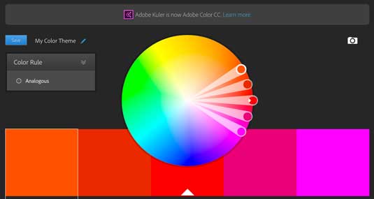 Công cụ này sẽ giúp bạn chọn những màu thích hợp bằng cách xoay bánh xe tới những màu mà bạn muốn. Bạn có thể chọn và tạo những bộ màu theo từng chủ để. Bên cạnh đó bạn có thể sử dụng những bộ màu từ trang Web cũng như từ cộng đồng người dùng từ khắp nơi trên thế giới. Khi đã chọn được bộ màu thích hợp với bản thiết kế web thì bạn chỉ cần nhấn nút Download.