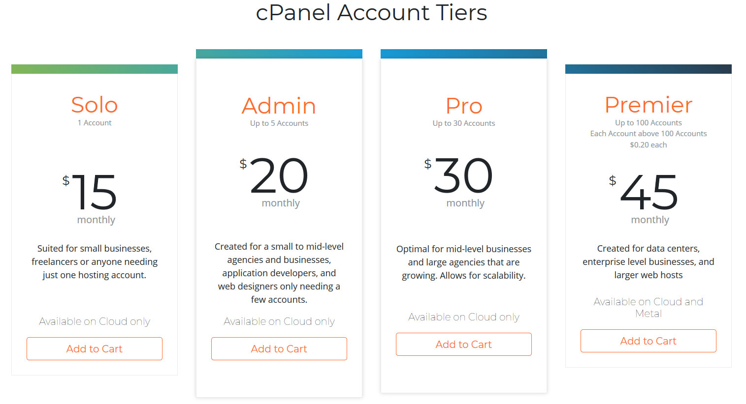 Bảng giá CpanelVãi với cái giá của Cpanel với từng account