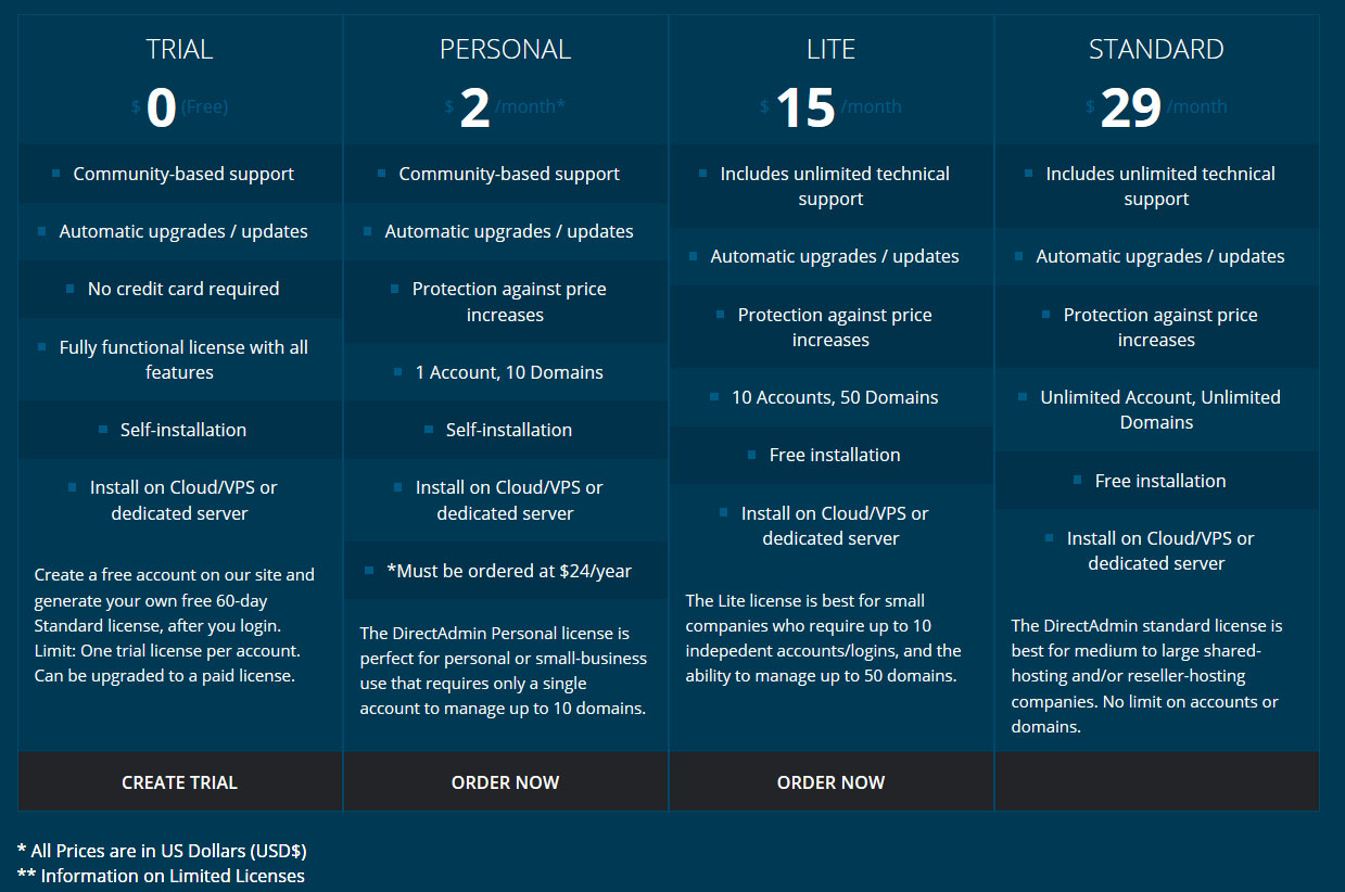 Hiện nay giá License cPanel đắt như quỷ và tính theo user, License DirectAdmin cũng đã đắt hơn. Ngày nay để hoạt động một máy chủ, phần cứng không còn là vấn đề với nhà quản trị, vì chi phí phần mềm đắt hơn rất nhiều nếu so sánh về giá và vận hành hàng năm. Thường cPanel hoặc DA sẽ cài trên VPS có cấu hình tốt và nếu cài trên VPS cấu hình tối thiểu, thì riêng chi phí bản quyền License đã đắt nhiều lần chi phí VPS.