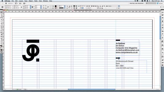 Cùng với công cụ thước kẻ có sẵn, bạn cho thêm các yếu tố cần thiết vào letterhead và thử nghiệm với các thiết kế và bố cục. Cân nhắc việc bố trí các thông tin của bạn, dĩ nhiên là logo sẽ phải được nhấn mạnh ở letterhead, trong khi phần địa chỉ và các thông tin khác đóng vai trò thứ yếu. Hãy nghiên cứu việc bố trí này với các thiết kế sản phẩm khác trong thiết kế bộ nhận diện thương hiệu của bạn.