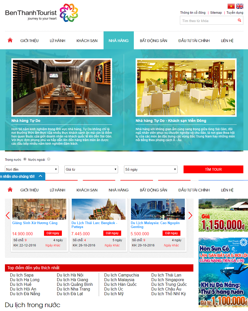 Đây là một trang web du lịch chuyên nghiệp mà tôi từng biết, nó không chỉ cho phép người dùng tìm kiếm các thông tin dễ dàng mà cách bố trí thông tin rất khoa học và đẹp mắt. Người dùng muốn đi du lịch ở đâu cũng có thể tìm thấy tour mình cần một cách nhanh nhất, các tour được bố trí tương đối dễ nhìn với thông tin mạch lạc.