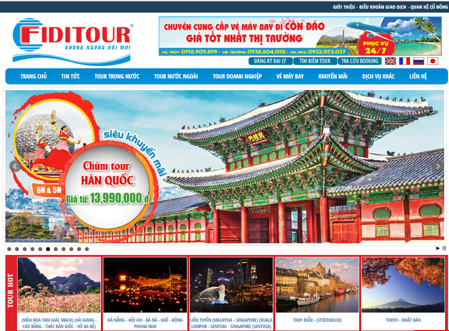 Nhiều người biết đến trang web du lịch của Fiditour vì đây là một thương hiệu cũng khá nổi về Du lịch tại Việt Nam. Sự cổ điển trong cách bố trí thông tin và nhìn cách thể hiện màu sắc cũng chưa được hợp lý. Trang web cũng có sự đầu tư nghiêm túc về mặt bố cục và nội dung nhưng nhìn chung nó vẫn mang một dáng dấp "rất Việt Nam" mà tôi thường hay nhắc đến việc các trang web Việt cố gắng học nhau để rồi không có nét riêng cho mình.
