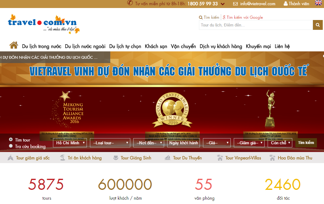 Việt Travel là một thương hiệu du lịch mà chắc rất nhiều người Việt Nam ai cũng phải biết, ngoài thương hiệu và các giải thưởng họ đã đạt được trong lĩnh vực du lịch. Nhìn chung trang web ổn nhưng về mặt nội dung trang web du lịch của Viet Travel đang "tra tấn người dùng" bằng thông tin quá nhiều. Quan điểm cá nhân của tôi là trang web đơn giản và điều hướng tốt người dùng mới là một website thành công. Thiết nghĩ chỉ cần hiển thị vài hình ảnh đơn giản về tour các khu vực, người dùng muốn xem cái gì thì "phụ vụ" thông tin đó cho họ thay vì hiển thị chằng chịt như thế này. Bạn nên tránh khi bố cục thông tin quá nhiều và mù cả mắt khi xem trên trang web này.