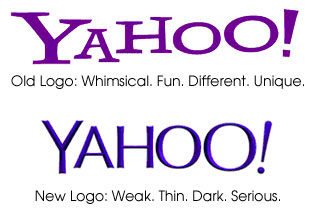 Yahoo thay đổi logo nhưng sau đó câu trả lời “Yahoo là gì?” rốt cuộc chưa được giải quyết. Như vậy, việc thay đổi logo cho dù có thu hút được công chúng cũng không mang lại giá trị gì nhiều.