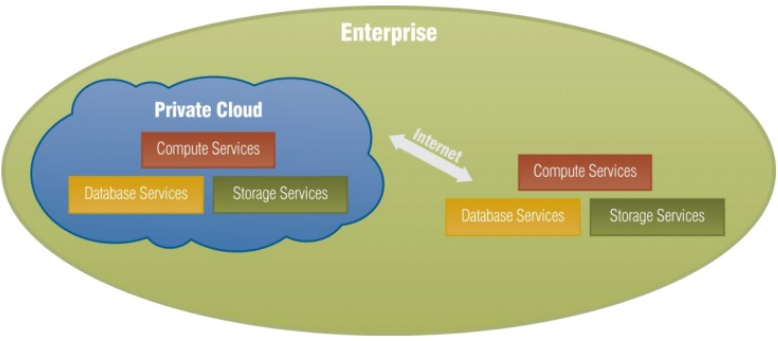 Private CloudCác cơ sở hạ tầng được cấp phép cho sử dụng độc quyền bởi một tổ chức bao gồm nhiều người. Ít có nhu cầu bảo mật và tính pháp lý so với Public Cloud.