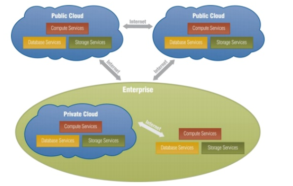 Các cơ sở hạ tầng điện toán đám mây là một thành phần của hai hoặc nhiều hơn những cơ sở hạ tầng điện toán đám mây (tư nhân, cộng đồng, hoặc công cộng) mà vẫn thực thể duy nhất, nhưng đang bị ràng buộc với nhau bằng công nghệ tiêu chuẩn hóa hoặc độc quyền cho phép dữ liệu và ứng dụng di động. Nó là sự kết hợp của Private Cloud và Public Cloud.