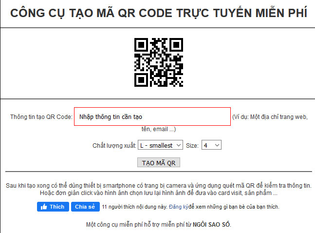 Cách thức làm việc cũng khá đơn giản, chỉ cần nhập thông tin bạn muốn tạo mã QR sau đó bấm TẠO MÃ QR là bạn có ngay một mã QR code cho riêng mình.