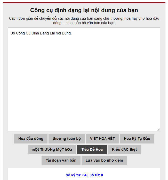 Nếu bạn đang copy nội dung từ một trang web khác, và nội dung là một tiêu đề hay một bài viết với định dạng chữ thường, chữ hoa ... lẫn lộn. Hoặc đơn giản bạn muốn toàn bộ tiêu đề là chữ hoa mà không phải nhập lại. Thì đương nhiên đây là bộ công cụ tuyệt vời cho bạn.